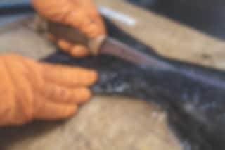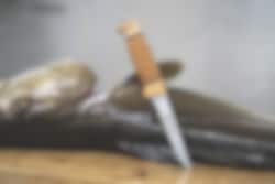 Fiskekniv med fleksibelt knivblad og kork i skaftet