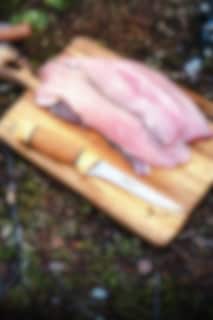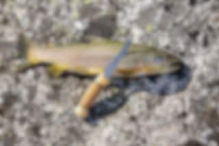 Dette er en perfekt fiskekniv med fleksibelt knivblad og kork i skaftet som holder kniven flytende hvis du er uheldig å mister den i vannet. Skaftet er fleksibelt og er laget av kork og norsk bjørk med gummi-innlegg mellom lagene noe som gir kniven et godt grep selv om den blir våt. Bladet er konslipt og tynt og gjør at kniven er god til å filetere fisk. Bakerst på skaftet er det et hull til å sette snor, hvis man ønsker dette. Sandvik stål i knivbladet som er ekstra holdbart og kork/ oljet bjørk i skaftet. Kniven leveres med lærslire og og en flott gave eske.