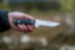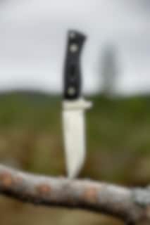 Dette er en kraftig fulltangekniv med rett slipt knivegg med fingervern. Kniven passer perfekt som jaktkniv/ turkniv/fiskekniv pga knivbladet har en liten drop-point profil. Kniven er velbalansert og ligger svært godt i hånden ved bruk. Sandvikstål i knivbladet som er ekstra holdbart. Micarta skaft, som er et kunstig kunststoff som er svært hensiktmessig utformet og holdbart.