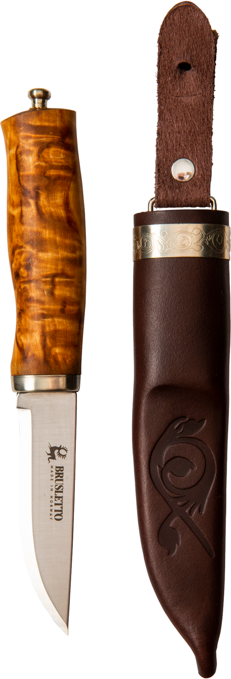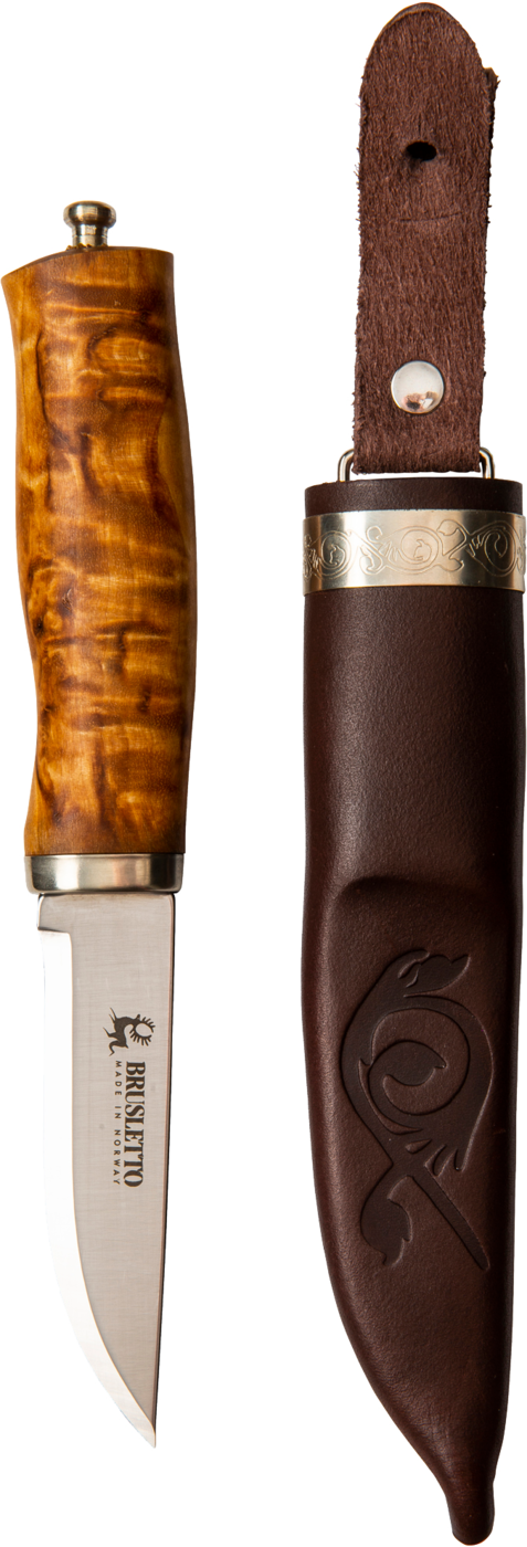 Dette er en klassisk tollekniv som er anvendelig til det meste. Knivbladet har en rett slipt egg. Holk og knapp i nysølv. Gravet nysølvbånd på toppen av sliren. 14116N stål i knivbladet som er holdbart og enkelt å slipe opp. Oljet bjørk i skaftet. Kniven leveres med en slire.