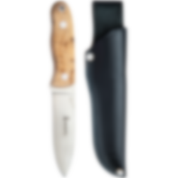 Dette er en kraftig fulltang turkniv for jegere og friluftsfolk . Knivbladet er en kombinasjon av tradisjonell og moderne knivteknologi. Turkniven er egenartet med sitt spydformede blad og serratering på ryggen av bladet. Dette er en kniv for den som vil ha en solid turkniv med konslipt blad som kan brukes til det meste. Kniven er velbalansert og ligger svært godt i hånden ved bruk. Skafteplatene er smalnet ned og er mer profilert enn tidligere kniver. Bøhler 690 i knivbladet, som er holdbart og enkelt å slipe opp igjen. Oljet masurbjørk i skaftet. Kniven blir levert med en sort slire og en flott gave eske