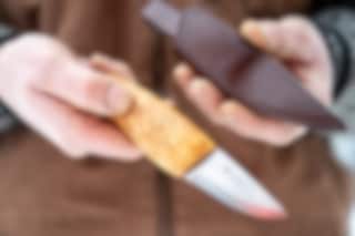 Knivbladet er kort og kan brukes til alle typer oppgaver. Håndtaket er laget av masurbjørk og kniven blir levert med en slire i brunt okselær med sikkerhetsinnlegg. Rognald kniven er håndlaget, og satt sammen på vår fabrikk på Geilo.