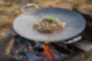 En steke helle for den intime gruppen eller familien, passer fint for opptil 8 personer. En fleksibel modell som er enkel å ta med ut i skogen, i båten eller i bobilen. Steke hellen kan brukes i kombinasjon med den medfølgende gassbrenneren på stativ, men også på en grill eller rett over åpen ild. Steke hellen er laget av høykvalitets varmvalset stål og leveres fabrikkoljet.