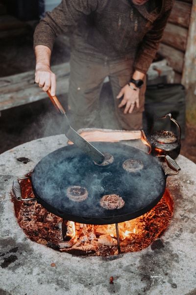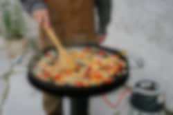 Vår Traktør stekehelle med hevede kanter gir deg god fleksibilitet i matlagingen. Den 58 cm store steke hellen håndterer enkelt mat til selskaper og sammenkomster på opptil 8 personer. Koketoppen kan brukes i kombinasjon med våre gassbrennere eller direkte over åpen ild. Den er laget av høykvalitets varmvalset stål og leveres fabrikksmurt. Våre stilige håndtak, i forkrommet fjærstål, har hentet både inspirasjon og funksjon fra vakre gamle vedovner, håndtakene holder seg kjøligere enn platetoppen. Hällmark of Sweden har sitt opphav og merkevare fra det svenske land og fjell, med dette følger et ansvar om kvalitet og pålitelige produkter. Derfor tilbyr Hällmark livstidskvalitet på produktene våre. Tre avtakbare ben for matlaging over åpen ild er inkludert. Diameter 51 cm, kant 4 cm, benhøyde 22 cm, vekt ca 6,4 kg.