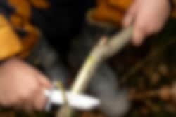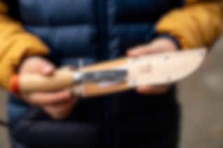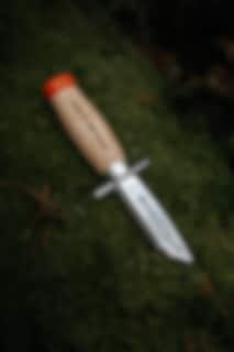 Brusletto Barnekniv er vår minste kniv hittil. Laget for de aller minste barna som skal ha sin første kniv. Skaftet er laget i lakkert tre og knivbladet er produsert i rustfritt stål. Skaftet er beregnet for små barnehender og tuppen er butt for å hindre ulykker. Kniven har fingerbeskytter (dobbelt parergrep) foran knivbladet. Kniven har en orange tupp for å enkelt finne den igjen om du mister den i skogen.