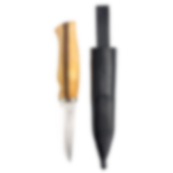 Knivbladet har en moderat lengde, noe som gir god kontroll og gjør kniven behagelig å bruke til varierte oppgaver. Bladet er laget av 12C27 Sandvik stål, et slitesterkt stål som er enkelt å slipe. Skaftet er utført i oljet bjørk og nøttetre, noe som gir et solid og naturlig grep.