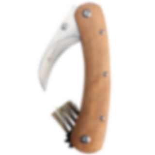 Vedalen soppkniv er et funksjonelt og gjennomtenkt verktøy for sopplukking, godt egnet til både kantareller og annen matsopp. Skaftet er laget av solid, oljet oliventre som gir et godt grep selv i fuktige forhold. I motsatt ende av knivbladet sitter en tett og slitesterk børste laget av ekte villsvinbust, som enkelt fjerner jord og rusk fra nyplukket sopp – uten å skade selve soppen.