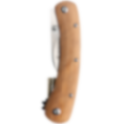 Både bladet og børsten kan foldes inn i skaftet, noe som beskytter dem under transport. En integrert sidefjærslås sørger for at bladet holdes sikkert på plass både når det er åpent og når det er lukket. Det hindrer at kniven folder seg utilsiktet sammen under bruk – eller åpner seg i lomma.