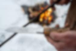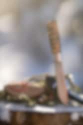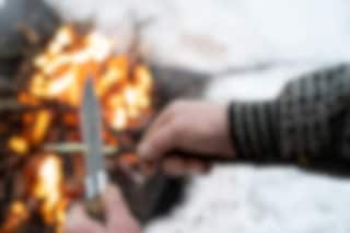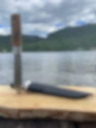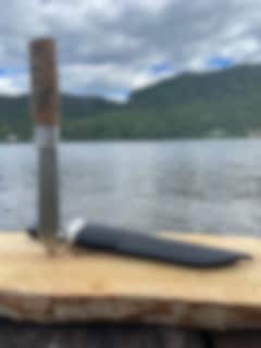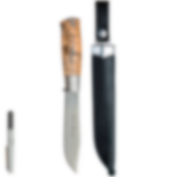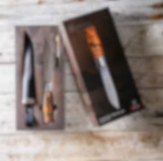 Bladet er laget av Sandvik Stål, som er kjent for sin holdbarhet og enkel sliping. Skaftet er laget av nøye behandlet masurbjørk, noe som gir både et vakkert og funksjonelt grep. Kniven leveres med en stilfull lærslire for sikker oppbevaring og enkel tilgang.
