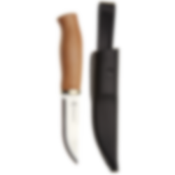 Dette er en allroundkniv for jegere og friluftsfolk. Siden knivbladet er bredt og rettslipt, gir dette kniven en god tyngde. Fasongen på kniven gjør at kniven egner seg godt som en tradisjonell, norsk brukskniv. Knivbladet er ikke for langt - som gjør at kniven er god å bruke. 144116N stål i knivbladet som er holdbart og enkelt å slipe opp. Vanlig oljet bjørk i skaftet. Kniven leveres med lærslire i en flott gave eske.