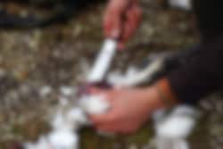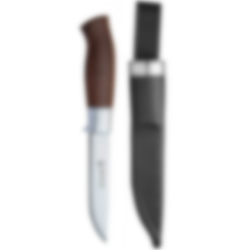 Dette er en mellomstor allroundkniv for jegere og friluftfolk. Knivbladet er smalt konslipt med en lengde på 11,5 cm. Støpt aluminiumsholk med fingerbeskytter. Kniven er suveren til å skjøre brød, pølser, spikke pølsepinner eller andre oppgaver du ønsker å bruke kniven til. Knivbladet er stålkvalitet Sandvik 12c27 som er holdbart og lett å slipe opp igjen. Skaft i amerikansk rotnøtt. Kniven blir levert med en slire og en flott gave eske.