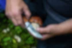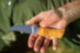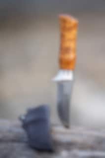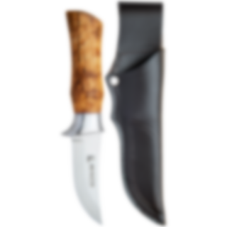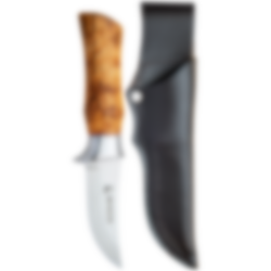 Dette en en svært god jaktkniv/ turkniv med hulslipt knivblad. Knivbladet har et buet oppsving (trailing-point) tilpasset til jakt, men som også er anvendelig til annet bruk. Siden knivbladet er hulslipt, er kniven perfekt til å skjære i kjøtt (mellom skinnet og kjøttet). Knivbladet er ikke for langt - som gjør at kniven er god å bruke. Kniven har støpt aluminiumshold med fingervern. Sandvik stål i knivbladet som er ekstra holdbart og oljet masurbjørk i skaftet. Kniven har en holk i støpt aluminium. Kniven leveres med lærslire og og en flott gave eske.