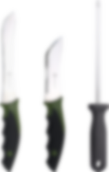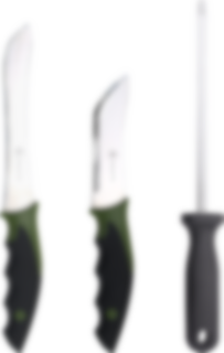 Slaktesett fra Brusletto inneholder en solid knivmappe laget i cordura materiale sammen med et slipestål, en Skinner flåkniv og Butcher kjøttkniv. Knivmappen kan