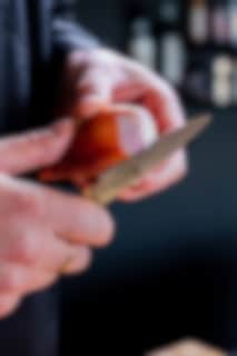 Dersom du ønsker å skjerpe kniven etter en tid, anbefaler vi en vinkel på 15° med skjerpestål. Mat med høyt salt og syrenivå vil sløve ned stålkniver. Skyll derfor kniven like etter bruk. Kniven tåler oppvaskmaskin, men vi anbefaler å rengjøre for hånd for å bevare knivens gode egenskaper. Oppvaskmaskin vil over tid gjøre stålkniver sløve og mattes ned. Ved rengjøring for hånd brukes lett såpevann og oppvaskbørste. Tørk av overflødig fukt med en tørr klut.