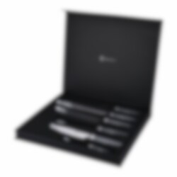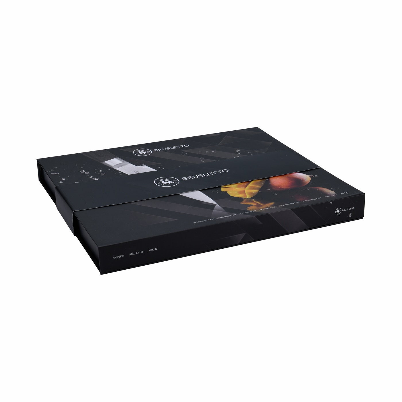 Settet leveres i en flott gaveeske og inneholder seks nøye utvalgte kniver som dekker alle daglige behov: filetkniv, brødkniv, to kokkekniver, chopper og skrellekniv. Hver kniv er utviklet med tanke på funksjon, grep og presisjon – slik at du får trygghet og ytelse i hvert eneste kutt.