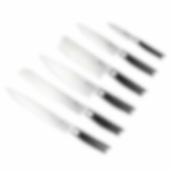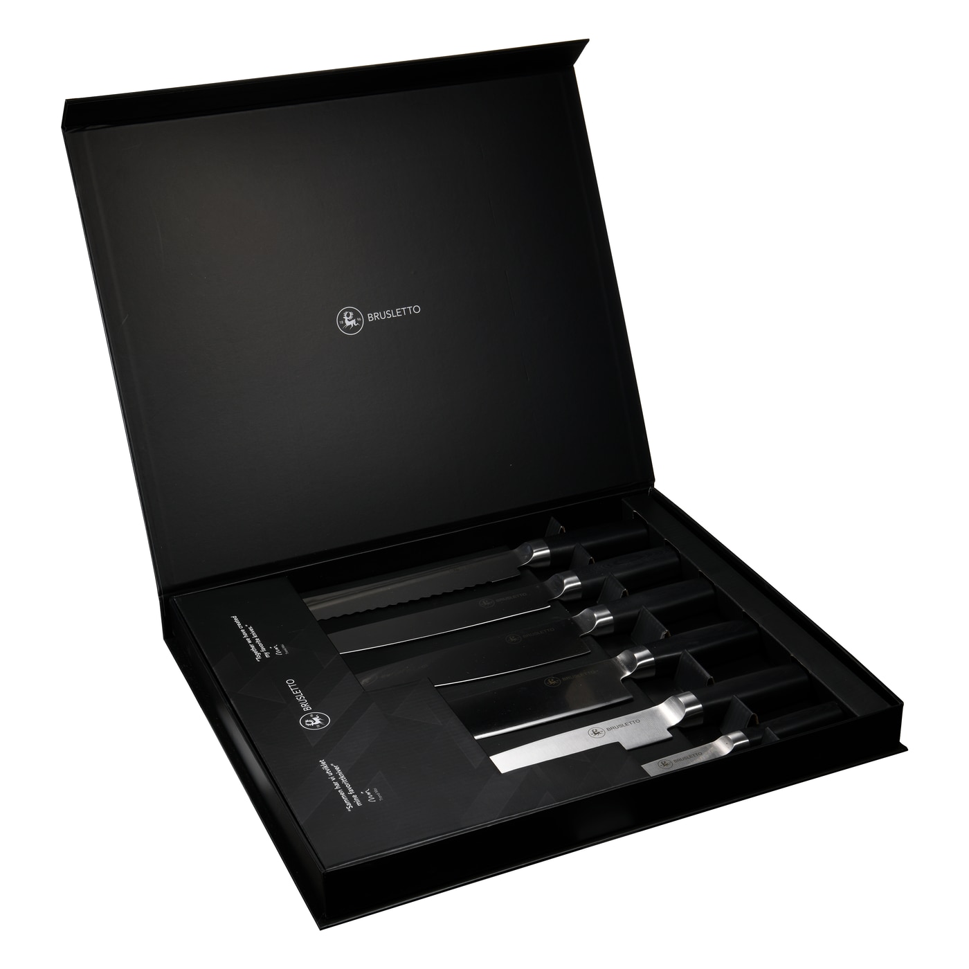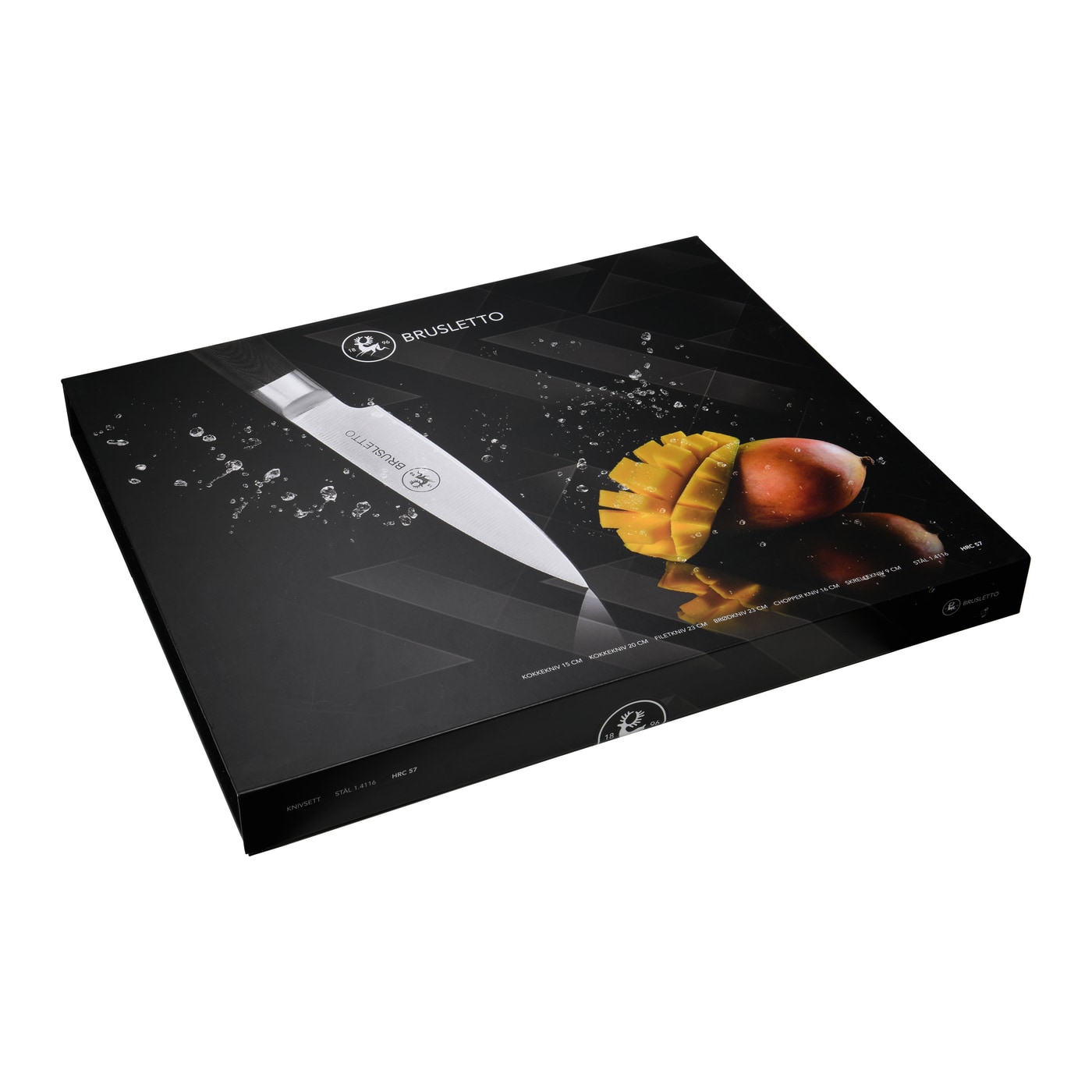 Brusletto Knivsett i 6 deler er et komplett sett for deg som ønsker kvalitet, funksjonalitet og design i samme pakke. Knivene er produsert i tysk stål med en hardhet på 57±2 HRC – en stålkvalitet kjent for sin balanse mellom skarphet og slitestyrke. Håndtakene er laget av høykvalitets kompositt med ergonomisk form og et sofistikert uttrykk som passer godt i både moderne og klassiske kjøkken.