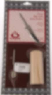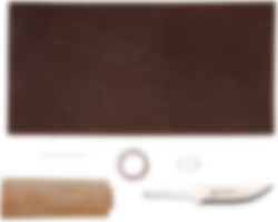 Lærstykke, nål, tråd, masuremne, holk og Jerven-knivblad.