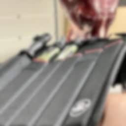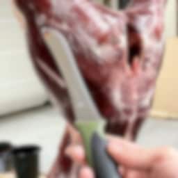 De siste tre årene har vi vært så heldige å få teste Bruslettos slaktesett på slakting av hjortevilt, og vi må si at vi er veldig fornøyde. Knivene har godt stål som holder seg skarpt selv om du skulle være uheldig å skjære i bein en gang eller to. Når knivene blir sløvere er de lett å kvesse med knivkvesseren fra Brusletto, som har riktig vinkel for bladet. Håndtakene er gummibelagt slik at de ligger veldig godt i hånden når du flår eller deler opp kjøttet. Dette gjør at man ikke blir så fort sliten i "klipa"når man bruker knivene over lengere tid. Vi i Jegerbrødre anbefaler slaktesettet fra Brusletto på det sterkeste.