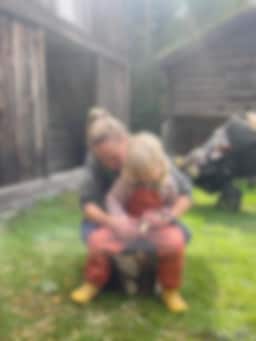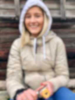 En trivelig jente som spikker med hjerte for skogen og treverk. Skoleskogdag Flesberg (Buskerud) i 2017.
