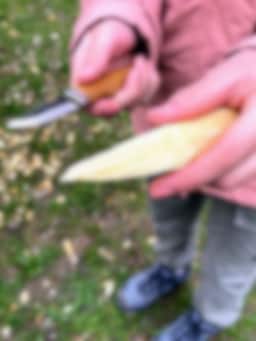 God kniv for små hender: Et håndtak som ligger godt i hånden er viktig når man skal lære seg å bruke et nytt verktøy. Med kyndig veiledning av Skogselskapet