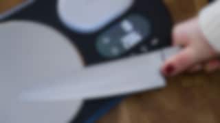 Vi anbefaler ikke å kutte opp mat mot harde materialer, og spesielt ikke mot overflater som er hardere enn kniven (eksempelvis glass, granitt, metall og keramikk).